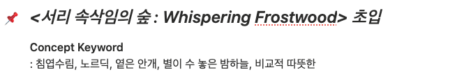 우선 내가 필요한 것은 가장 초반부 맵인 서리속삭임의 숲의 무드보드였다.